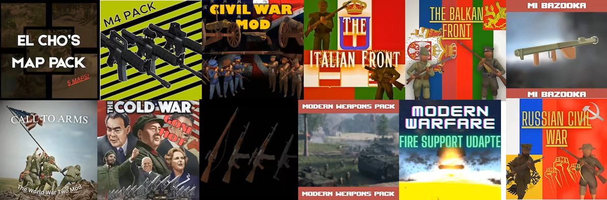 Rising Front has full workshop support for Maps, Infantry, Cavalry, Tanks, Fire Support, Player Weapons and buildables!