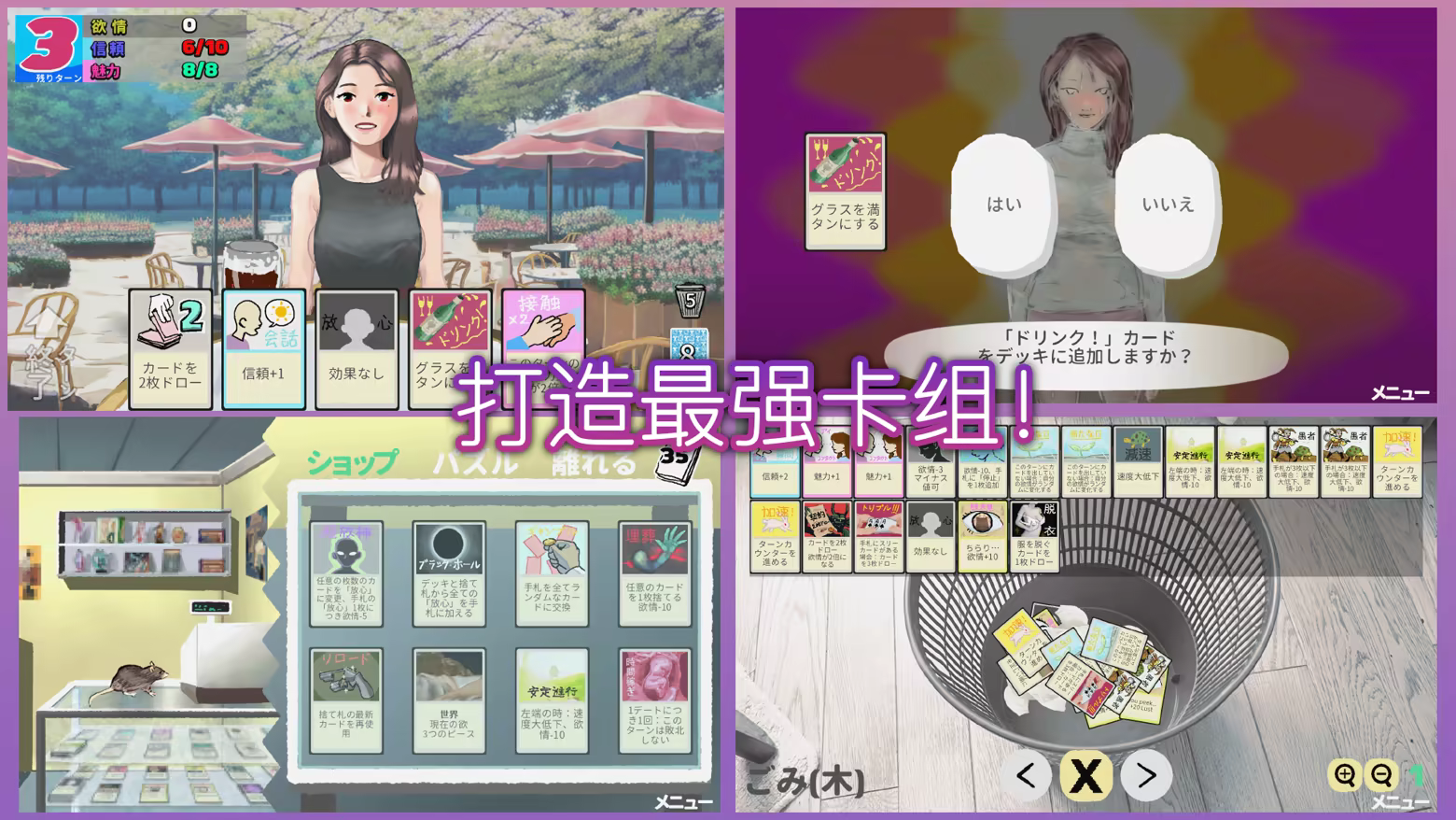 慢慢提升她的信赖与好感,并谨慎打出每一张卡牌!